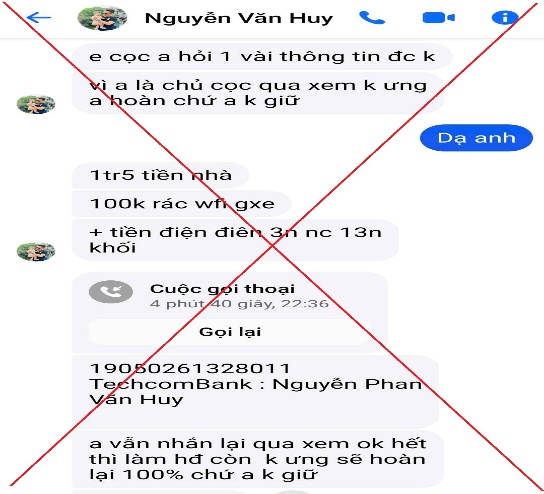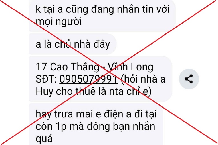 Vừa qua, chị N (từ tỉnh Trà Vinh trước sáp nhập đến tỉnh Vĩnh Long để làm việc) lên Facebook để tìm nhà trọ cho thuê giá rẻ. Qua trao đổi, chị N tìm được một địa điểm vừa ý, giá cả phải chăng nên đã liên hệ với số điện thoại trên trang cá nhân để thuê nhà. Sau khi liên hệ được với số điện thoại “tự xưng” là chủ nhà và yêu cầu chị N chuyển khoản đặt cọc tiền để “giữ phòng” cho địa chỉ và số điện thoại để liên hệ. Sau khi nhận được tiền, đối tượng xóa Facebook, số điện thoại không liên lạc được và địa chỉ cho thuê nhà thì không có thật. Mặc dù số tiền không nhiều nhưng rất nhiều người dân bị các đối tượng này thực hiện hành vi lừa đảo.